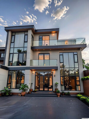 Công trình mang phong cách hiện đại kết hợp cửa nhôm cao cấp+ hệ lan can kính vô cực mang đến cho không gian hiện đại cho gia chủ